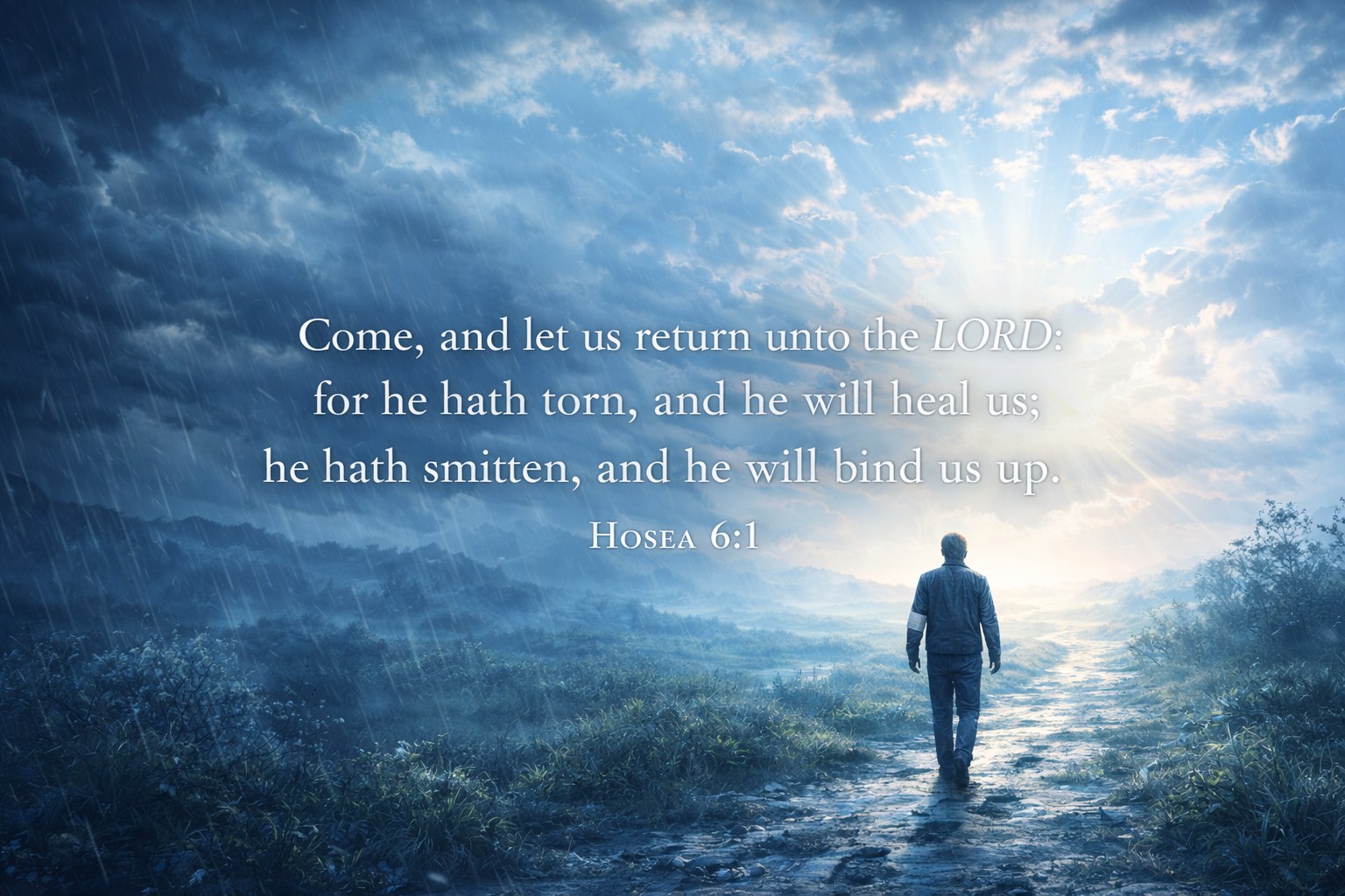 Hosea 6:1 ~ Come, and let us return unto the LORD: for he hath torn, and he will heal us; he hath smitten, and he will bind us up.